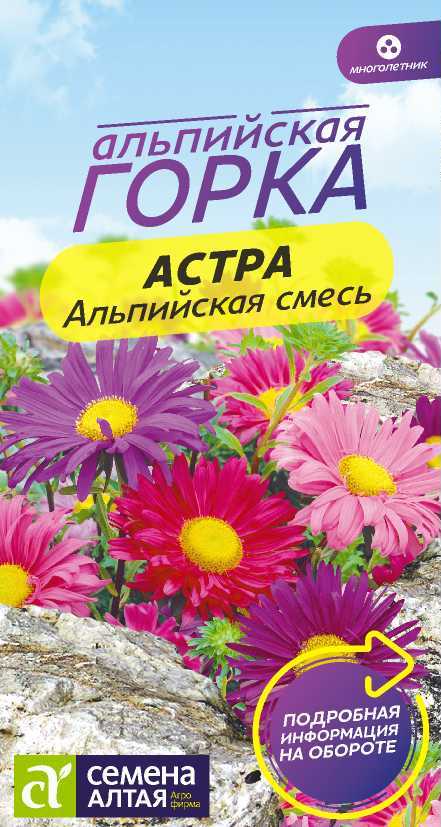 Астра альпийская - многолетнее декоративное растение. Формирует компактный кустик с многочисленными побегами высотой 20-30 см, увенчанные одиночными ромашковидными соцветиями диаметром 4-5 см. Растение впечатляет игрой красок: белые, сиреневые, розовые, голубые лепестки вокруг желтого глазка соцветий. Станет великолепным украшением каменистой горки или коврового цветника. Холодостойкое, светолюбивое растение, может расти в полутени. Не выносит переувлажнения и засухи. Хорошо растет на обычной садовой почве без свежей органики, кислые почвы необходимо нейтрализовать известью. Семена на рассаду высевают в марте-апреле, глубина заделки 0,5 см. Посевы содержат при температуре +15-18°С. Сеянцы пикируют с появлением первой пары настоящих листочков. В открытый грунт рассаду высаживают во второй половине мая. Перед высадкой в открытый грунт её закаливают в течение 1-2 недель, снизив температуру до +10°С. Схема посадки 20×20 см. Возможен посев семян в открытый грунт в конце апреля под временное укрытие на глубину 0,5-1,0 см (с последующим прореживанием всходов), или под зиму (в конце октября) на глубину 3 см. Сверху посевы мульчируют торфом или опилками слоем 3-5 см. Весной посевы раскрывают. Цветение длится с июля до конца сентября.