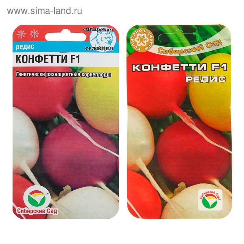 Оригинальная гибридная форма редиса алтайских селекционеров с разноцветными корнеплодами. Созревание корнеплодов начинается с возраста растений 18 дней и продолжается до 35 дней. При этом увеличивается урожайность и формируется корнеплоды высокого качества.