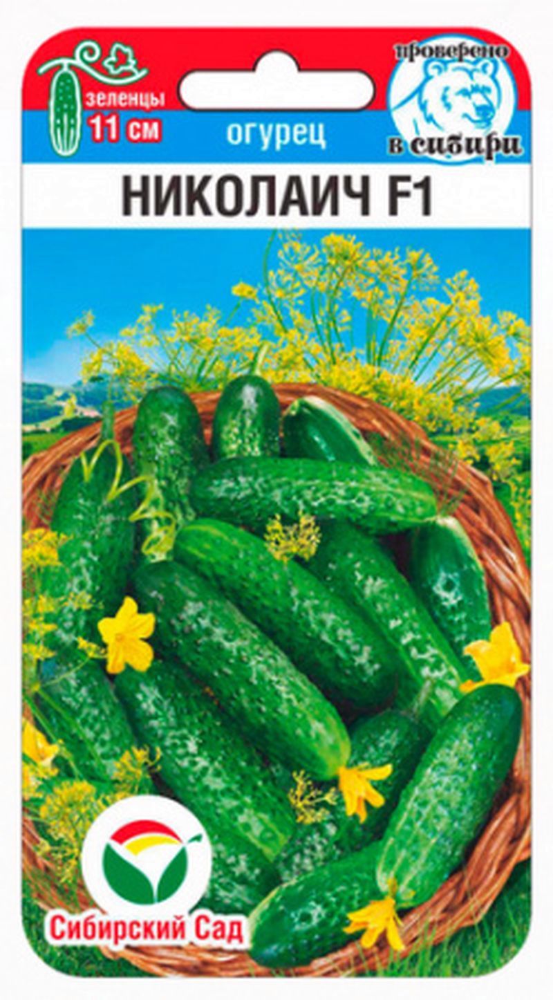 Растение средневетвистое, преимущественно женского типа цветения. Дружно формирует в узлах по 2-3 короткоплодных огурчика. Зеленцы среднебугорчатые, цилиндрические, зеленые с белым опушением и шипами. Масса плодов 60-70г, длина до 11 см. Мякоть плотная, без пустот и горечи, отличного вкуса. Свежие плоды вкусны в салатах, хороши для засолов и зимней консервации. Устойчив к мучнистой росе и повышенным температурам. Урожайность в пленочных теплицах до 14,0 кг/м2. "Семена"