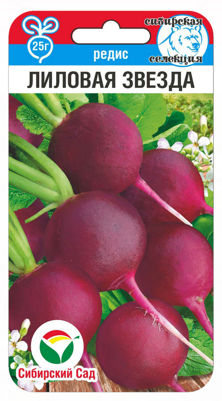 Среднеранний (25-30 дней) урожайный сорт сибирской селекции с яркой бордово-фиолетовой окраской корнеплодов и отличным вкусом белоснежной мякоти. Устойчив к весенним стрессовым погодным условиям, стрелкованию и растрескиванию. Предназначен для выращивания в течение весенне-летнего сезона.