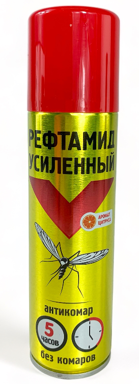 Рефтамид УСИЛЕННЫЙ Антикомар — репеллентное средство с длительной защитой от кровососущих насекомых. В течение 5 часов он надёжно убережёт от нападения от комаров, мокрецов, москитов, мошек, слепней и блох.