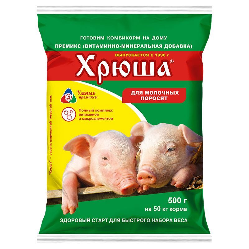 Витаминно-минеральная добавка в виде премикса 1% для молочных поросят обогащена необходимыми витаминами и минералами в сбалансированном отношении, которая: