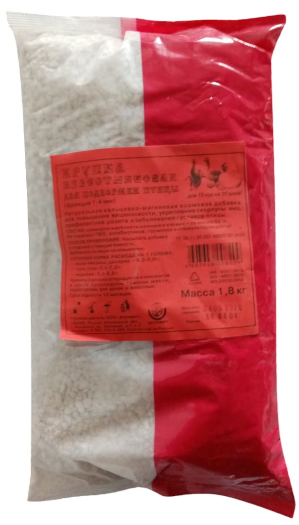 Крупка известняковая для подкормки птиц натуральная кальциево-магниевая кормовая добавка для обогащения рационов сельскохозяйственной и декоративной птицы. Выпускается в виде крупки (фракция 1-4мм). Цвет белый, желтоватый, буроватый. Продукт рекомендован для фермерских хозяйств и ЛПХ. Содержит кальций, магний и ценные микроэлементы в биологически доступных формах: