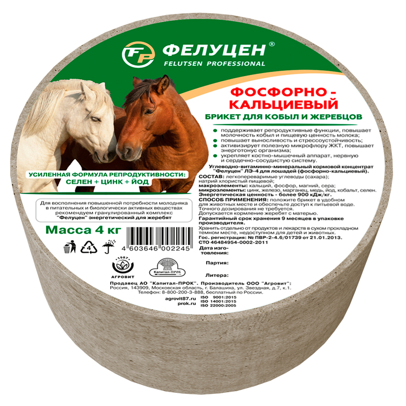 Сбалансированная комплексная кормовая добавка к основному рациону лошадей в виде прессованного блока (брикета) для лошадей, которая: